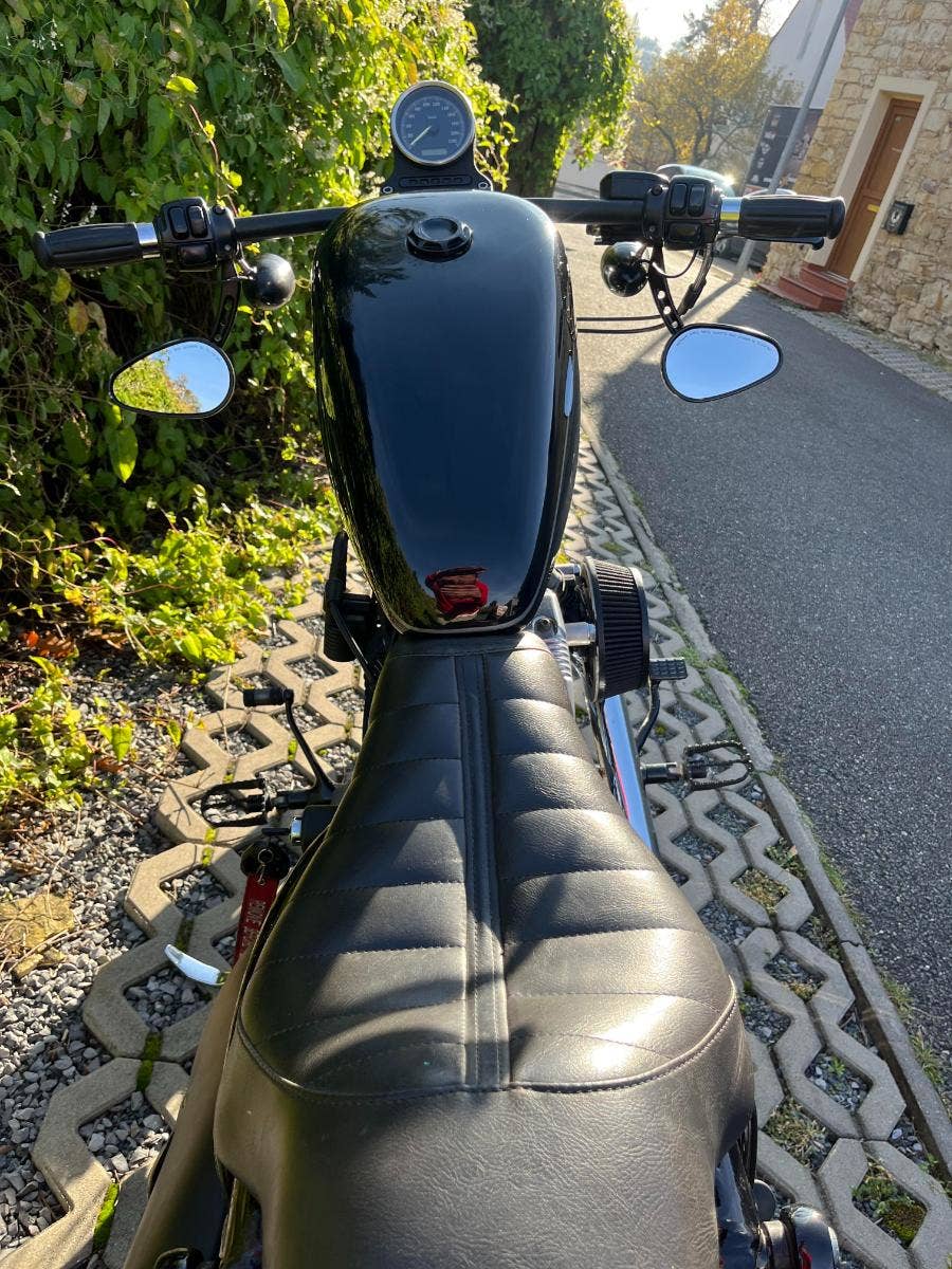 Zadní tlumiče jsou z mladšího modelu Sportster s větší možností nastavení tuhosti.