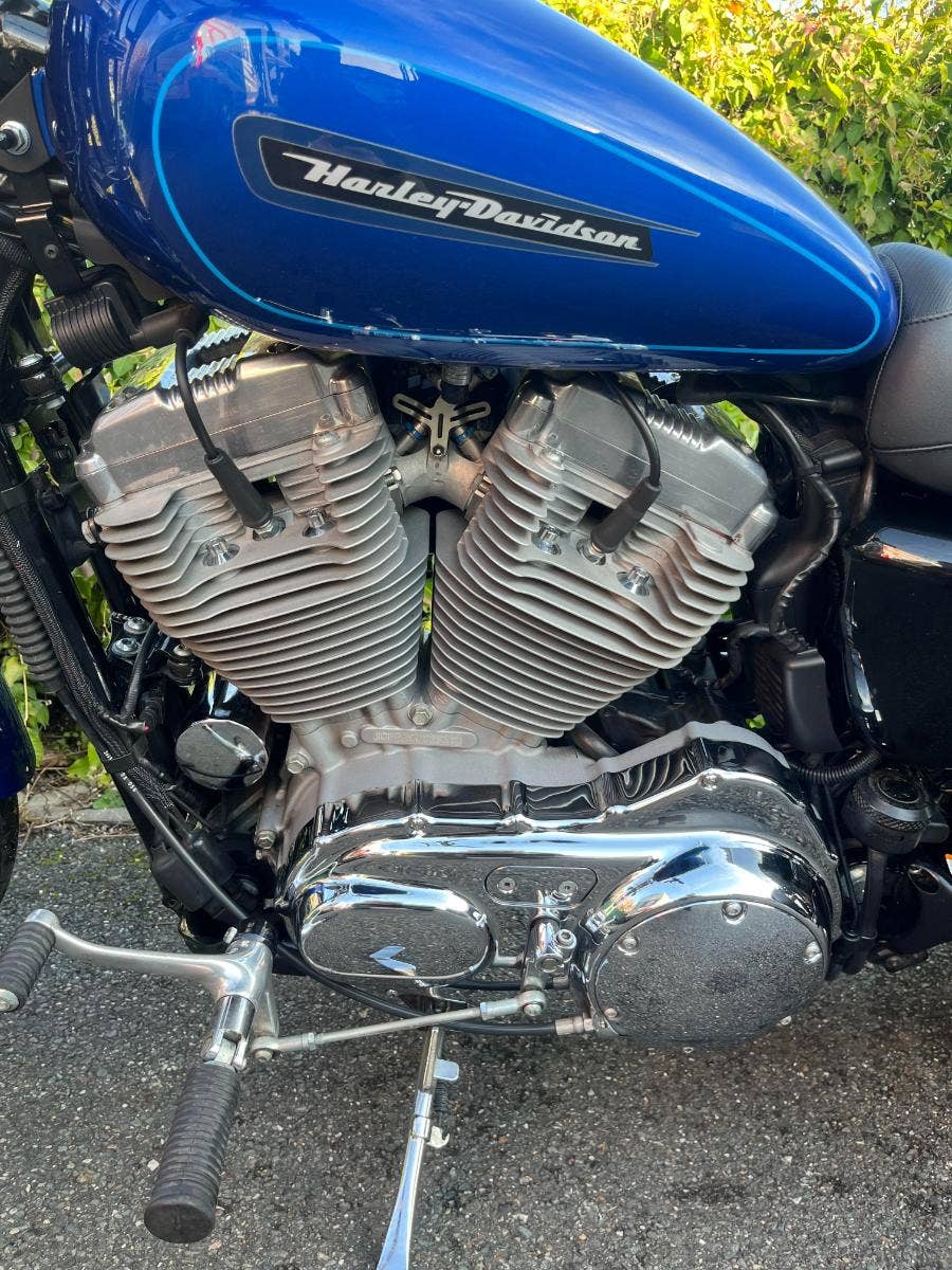 Osazen vzduchem chlazeným motorem Evolution 883ccm o výkonu 39 kW s 5ti stupňovou převodovkou.