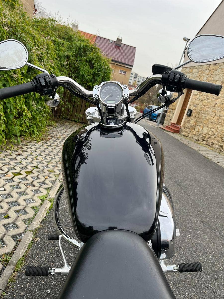 Osazen motorem Evolution 883ccm s 5ti stupňovou převodovkou a původním karburátorem.